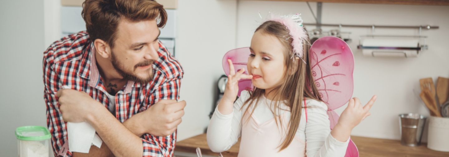 Dem Kind während des Kochens spielerisch etwas über die unterschiedlichen Lebensmittel beizubringen und spannende und lustige Geschichten darüber zu erzählen, macht Spass und motiviert. |
