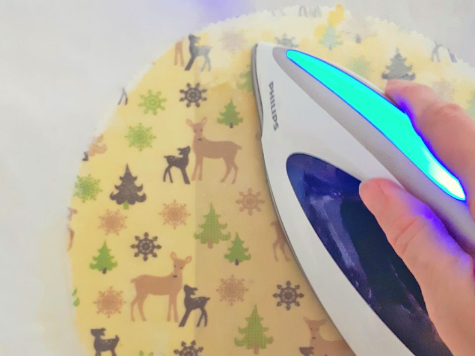 Mit dem Bügeleisen das Wachs erwärmen – es wird wieder flüssig und lässt sich mit dem Bügeleisen gut verteilen. Zu viel Wachs ausstreichen. Das Tuch wird durch die Flüssigkeit dunkler, so könnt ihr kontrollieren, ob das Ganze wirklich schön durchtränkt ist.