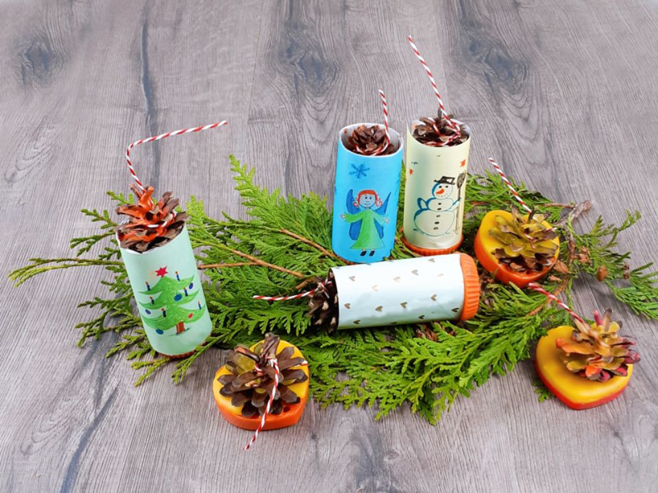 Nach Wunsch Toilettenpapierrollen dekorieren.