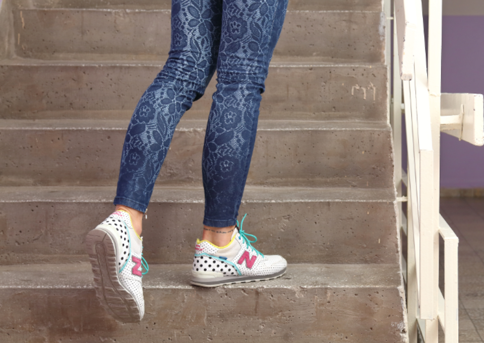 Selbst wenn es bei Ihnen einen Lift hat, nehmen Sie die Treppe und versuchen Sie zwei oder drei Tritte auf einmal zu nehmen, denn das stärkt die Bein- und Pomuskeln. Wenn Sie dann noch im Zickzack hochgehen, arbeiten auch die Innenschenkel verstärkt mit.