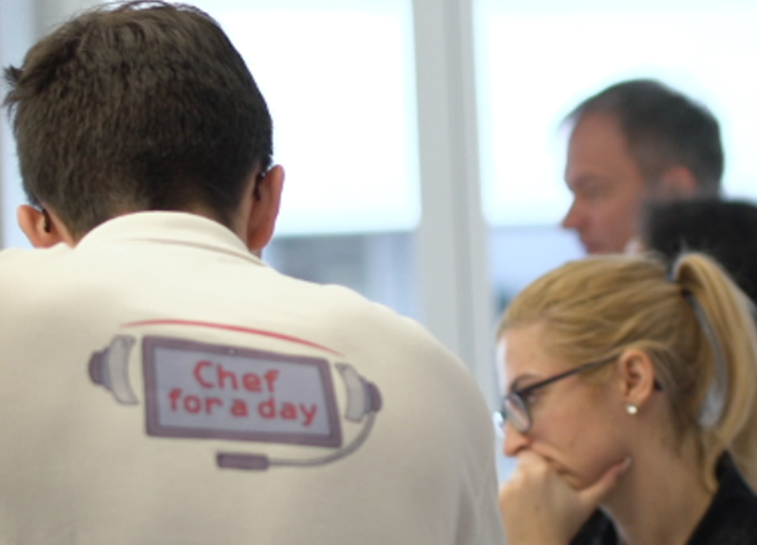 Il y a trois ans, nous avons créé le projet «Chef for a day». Il s’agit alors pour les apprentis/es de jouer le rôle du chef et d'accompagner un projet, du début jusqu’à la fin, une fois par an. En 2016, ils ont échangé le bureau contre la cuisine et ont géré le restaurant du personnel pour une journée. Par équipes spécialisées, ils ont cuit des petits pains, préparé des repas de midi, coordonné les commandes, attribué le personnel aux différentes tâches et fait la vaisselle. Les apprentis/es ont été à la hauteur et après le repas, les clientes et clients de la cantine ont quitté la table repus et satisfaits. L’année suivante, les apprentis/es ont fait le travail de la Communication d’entreprise et ont créé une édition du magazine destiné aux collaborateurs/trices, de manière autonome. Représentants/es de la jeune génération, ils ont traité des thèmes qui les touchent.