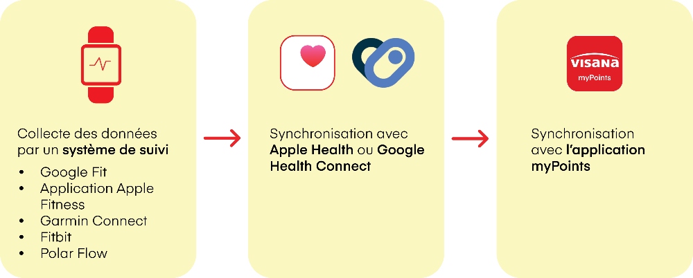 Apple Health et d’autres applications de suivi de l’activité physique restent pour l’instant disponibles dans l’application Visana et seront intégrés ultérieurement dans la nouvelle application myPoints.