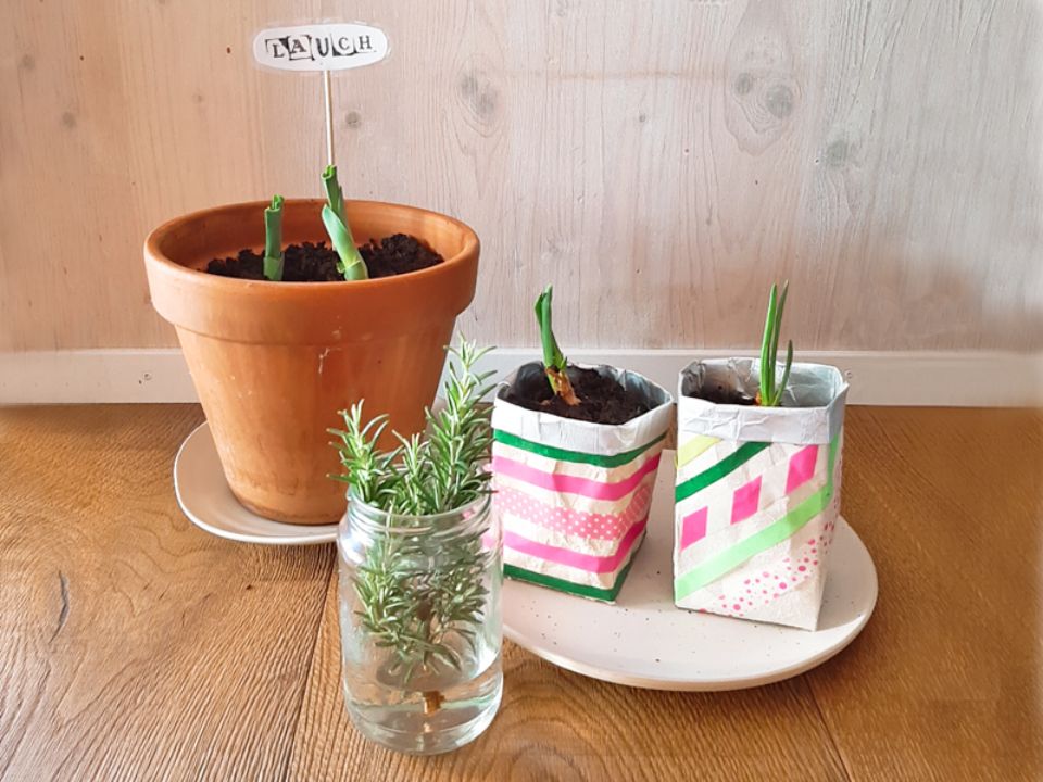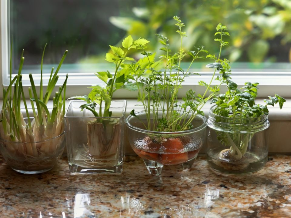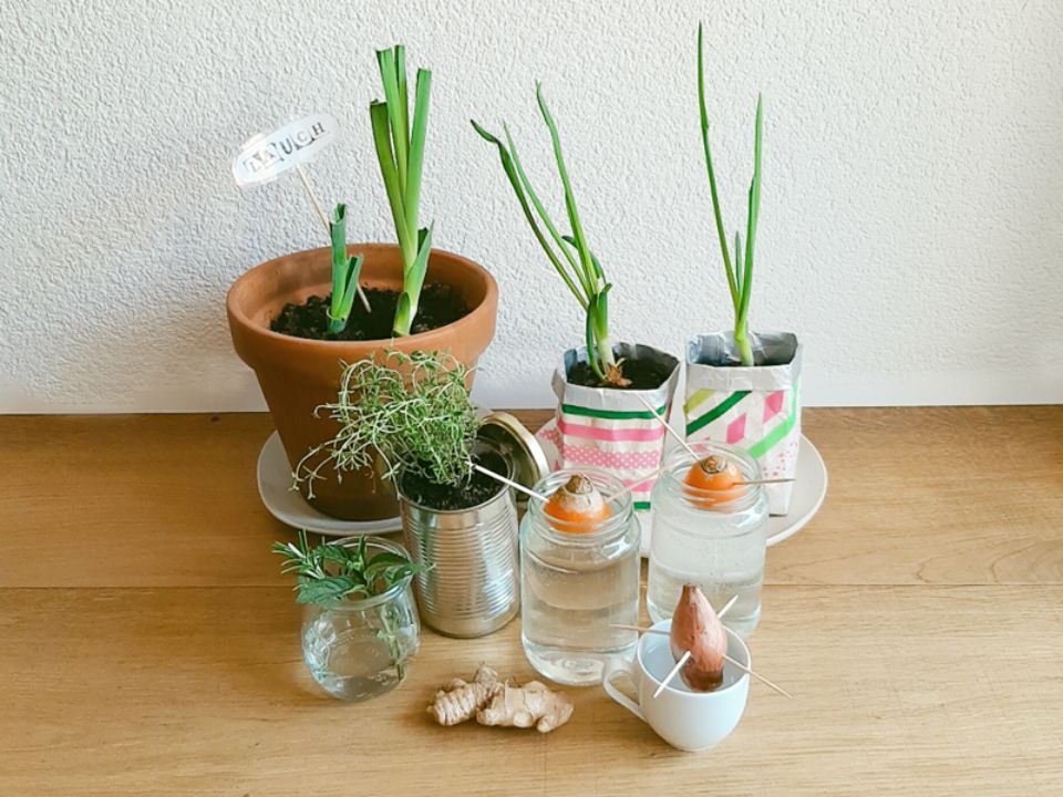 Affinché il giardinaggio ai tempi del coronavirus sia comunque un successo, abbiamo coltivato sul davanzale di casa alcuni ortaggi con gli scarti di verdure ed erbette aromatiche all’interno di vasetti di vetro, ciotole e materiale riciclato (ad es. contenitori portauova in cartone, contenitori di cartone per bevande oppure rotoli di carta igienica).